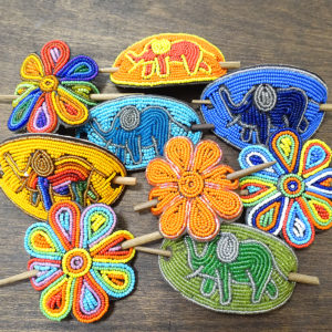 革とビーズのバレッタ